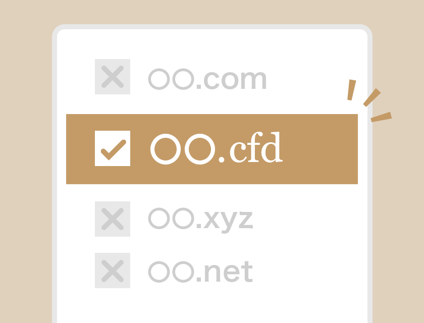 差別化を可能とするドメインWebサイトのドメイン名は、記憶に残るように、シンプルに短く、スマートにすることが重要ですが、「.cfd」は3文字と短いため、ブランド名などと合わせて覚えやすいドメインにすることが可能です。
