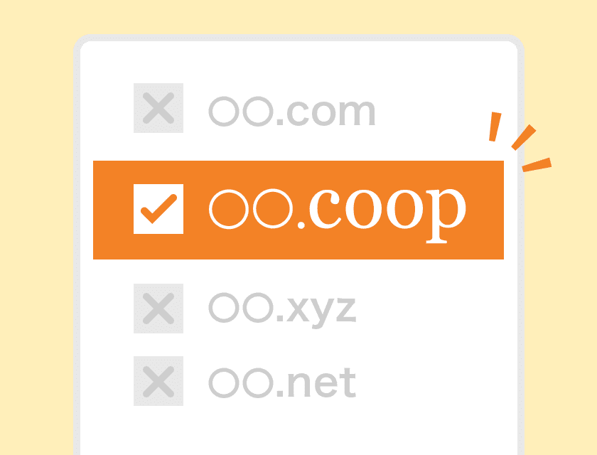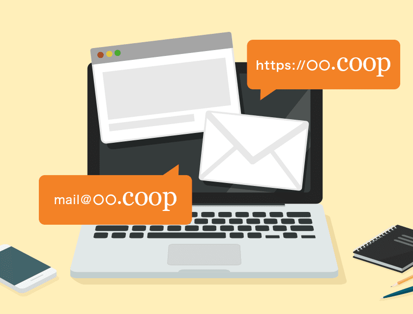 「.coop」は協同組合を意味する”cooperative“の略として協同組合のために誕生し、協同組合のみが登録できるドメインとなっています。 -