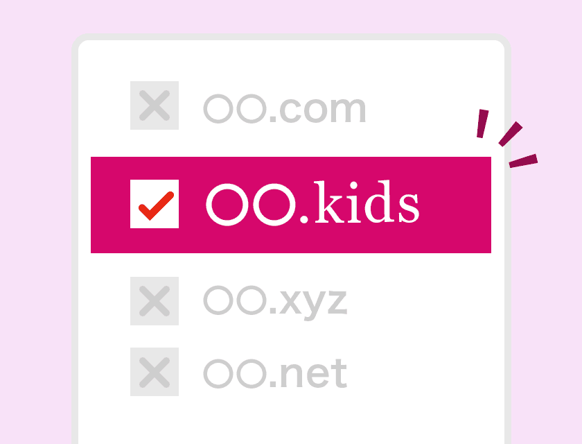 ドメイン取得は早い者勝ち。ぜひ世界に一つの.kidsドメインをご検討ください。