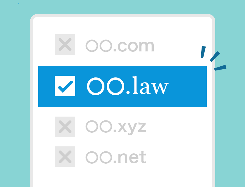 プロフェッショナルのためのドメイン「.law」ドメインを登録するには、弁護士有資格者か、認定法的機関(法律事務所、ロースクール、弁護士協会、裁判所など)である必要があります。