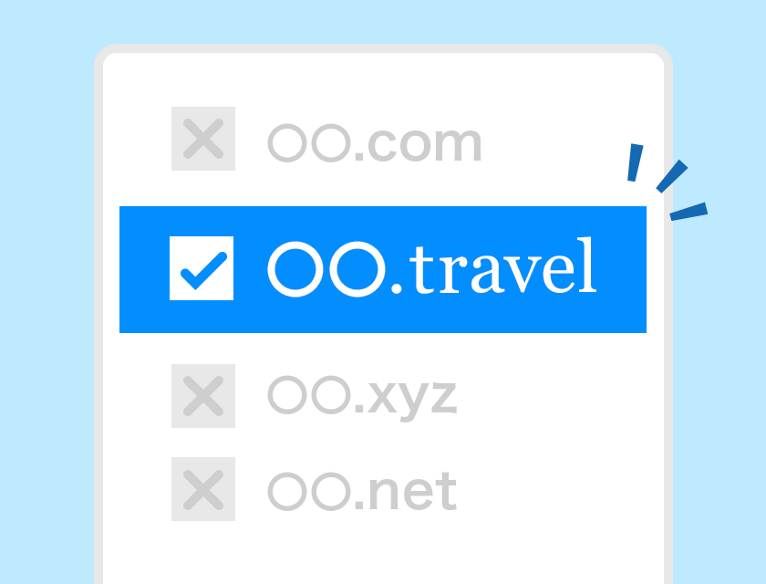 名前を短く覚えやすくできるドメイン「.travel」ドメインは一目で旅行のWebサイト・ブログであることが分かるため、サービス・商品・企業・メディア・ブログ名などと組み合わせることで、覚えやすいドメインにすることが可能です。