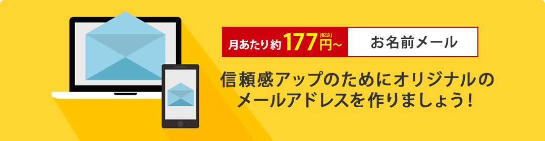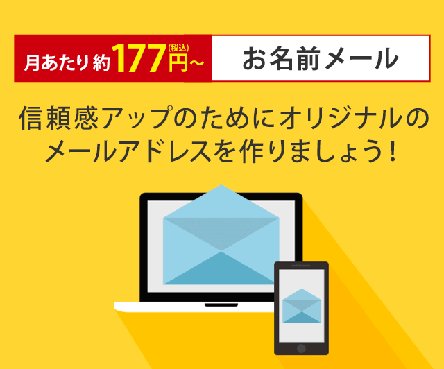 月あたり177円(税込)から!オリジナルのメールアドレスを作りませんか?「お名前メール」